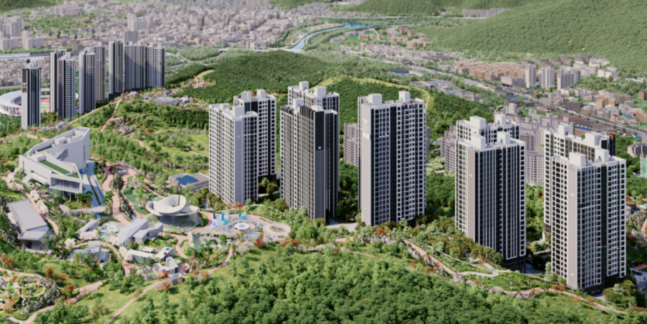 두 단지 모두 고층 설계로 탁 트인 조망을 확보할 수 있으며, 남향 위주 배치와 넉넉한 동간 거리 등 주거 환경을 고려한 설계가 돋보입니다. 커뮤니티 시설로는 피트니스, 작은도서관, 어린이집, 실내놀이터 등이 계획되어 있으며, 단지와 공원이 직접 연결돼 있는 구조로 생활 속에서 자연을 체감할 수 있는 환경이 마련됩니다. 단순한 주거 공간을 넘어 자연친화적 라이프스타일을 지향하는 단지로 평가받고 있습니다.
