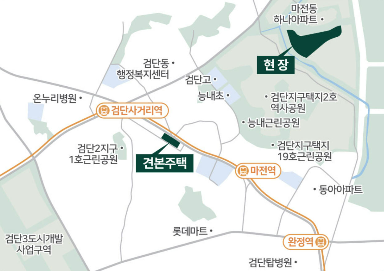 인천도시철도 1호선 연장 구간인 검단호수공원역과 인접해 있어 대중교통 접근성도 뛰어난 편입니다. 해당 노선을 통해 서울역까지 약 38분 소요되며, 공항철도, 7호선으로의 환승도 가능합니다. 또한 마전역 신설 계획도 있으며, 향후 일산, 김포 방면으로의 연장 시 서울 외곽과의 연결성이 강화될 전망입니다. GTX-D 노선 간접 수혜지도 기대할 수 있는 요소입니다.