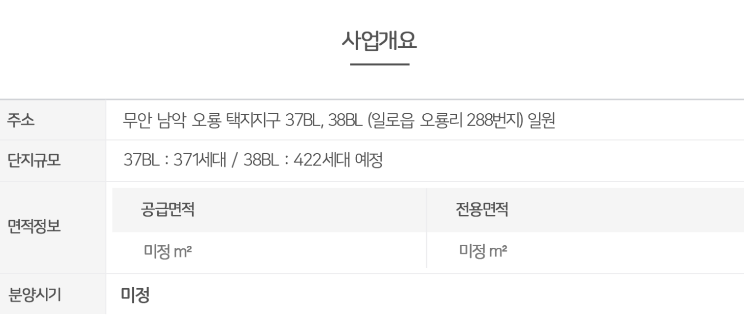 전라남도 무안군 일로읍 오룡리 288번지 일원에 조성되는 무안 오룡2지구 지엔하임 아파트는 남악 신도시와 함께 개발되고 있는 오룡 택지지구 내 37블록과 38블록에 각각 들어서는 대단지 아파트입니다. 37BL은 총 371세대, 38BL은 총 422세대로 총 793세대 규모며, 각 단지는 지하 1층~지상 20층 규모의 중고층 설계로 조성됩니다. 두 블록 모두 중소형 평형 위주로 구성되어 실수요자 중심의 분양 수요를 고려한 것이 특징입니다. 이 단지는 광역 교통망 확충과 주변 행정, 교육, 산업 인프라의 직접적인 수혜를 누릴 수 있는 입지에 자리잡아 있어 관심이 집중되고 있습니다.
