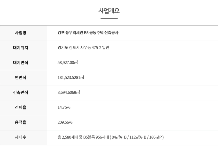 경기도 김포시 사우동 475-2번지 일원 풍무역세권 B5블록에 들어서는 김포 풍무 호반써밋 아파트는 풍무역세권 도시개발사업의 일환으로 추진되는 아파트 단지입니다. 총 956가구 규모로, 전용면적 84㎡, 112㎡, 186㎡ 등 중대형 평형으로 공급됩니다. 지역 내에서 보기 드문 대형 평형까지 포함되어 있어 수요자들의 관심이 높습니다. 풍무역세권 전체 개발구역은 약 87만㎡에 달하며, 총 6,900여 세대와 18,000여 명이 거주할 수 있는 미니 신도시급으로 계획되어 있어 입지적 장점이 확실합니다.