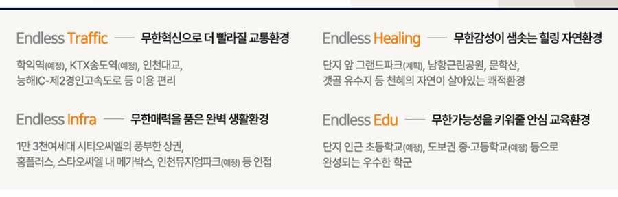용현 학익 도시개발사업은 인천 남부권의 도시 구조를 재정비하는 대규모 프로젝트로, 주거와 상업, 업무, 문화 기능이 함께 연계되는 생활권 개발을 지향하고 있습니다. 시티오씨엘 8단지 씨티오씨엘이 개발 흐름의 중심에 위치해 있으며, 기존 공급된 단지들의 안정적인 계약 흐름과 시장 반응은 향후 수요 기반 측면에서도 긍정적인 요소입니다. 스타오씨엘 상업시설이 개장하면 지역 내 생활 네트워크가 정착되고, 외부 유입 수요도 늘어날 가능성이 있습니다.